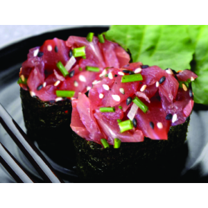 Le sushi est le plat traditionnel japonais par excellence, il se présente sous une forme ovale et il est constitué de riz vinaigré pressé à la main, sur lequel on dépose une tranche de poisson cru. Nous vous proposons de goûter aux formes les plus répandues du sushi, avec du saumon cru, du thon cru, de la daurade crue ou encore de la crevette. Si vous recherchez des saveurs moins conventionnelles, goûtez à nos sushis entourés d’une algue nori et surmontés d’œufs de poisson ou de tartare de poisson mariné.